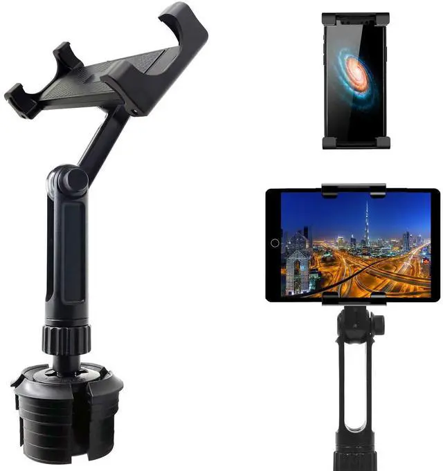 • ChargerCity Xtreme 10 inch Long Arm Cup Holder Mount support all tablet from 7" to 12" Screen Size (Extra-firm 10 inch arm absorbs vibrations and provides a stable viewing platform.)