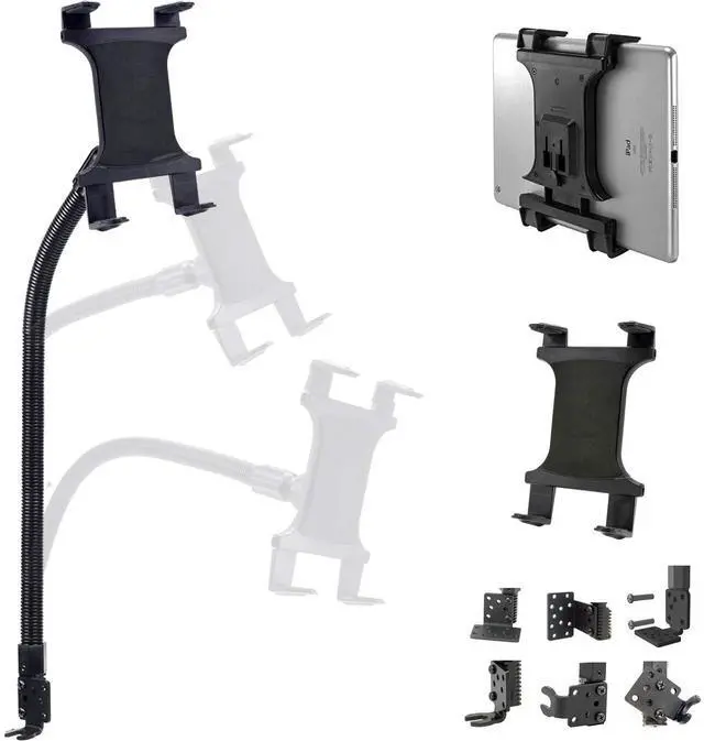 This ChargerCity Heavy Duty Rigit Custom Tablet Floor seat bolt mount features a 18.5 -Inch flexible gooseneck steel mounting pedestal that can easily attach to your car's seat bolt (includes Free Hard Install Drill Kit). Floor mounting is also feasible, though it's more of a permanent type solution. The custom Tablet holder is compatible with most 7"to 12" Tablet Device and is perfect for use regardless of whether you are using a with or with out protective case. (Compatible with i Pad AIR 4 3 2 Mini Google Nexus 10 8 7 Mini ASUS Memo Pad VovoTab Acer Iconia Samsung Galaxy Tab Pro 12.1 Lenovo Yoga Coby Kyros Tablet Device)