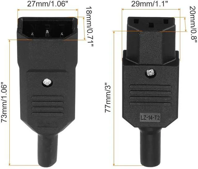 C13 Plug Size: 73 x 27 x 18mm/ 2.87" x 1.06" x 0.71" (L*W*H) ^^