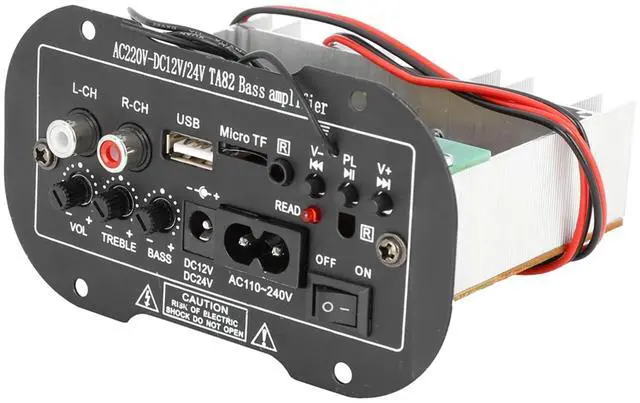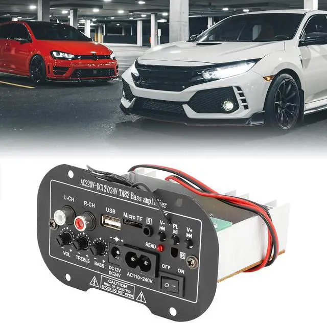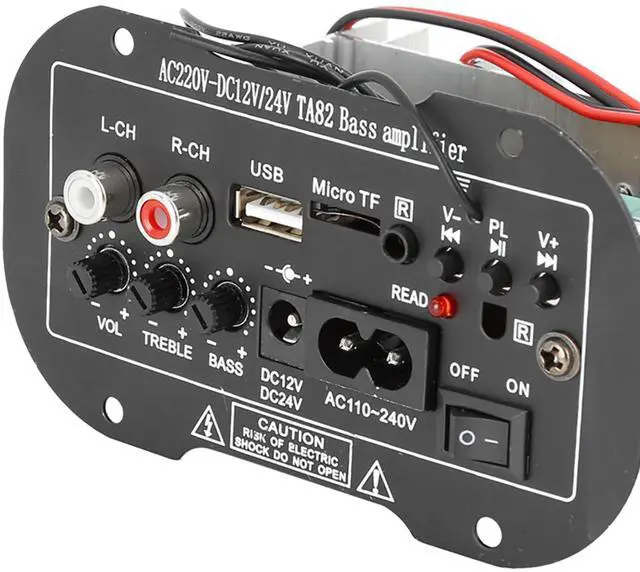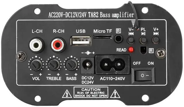 Features low frequency enhanced, high-fidelity, stereo power amplifier. Can be adjusted independently master volume, treble and bass, you can according to their own preferences for sound adjustment to meet different peoples needs. Support reading MP3 format file in TF card or U flash driver. Support adjusting treble, bass and master volume independently. Support DC 12V/ 24V or AC 100V-240V voltage. Universal fit for car, vehicle, SUV, truck, home and ect.