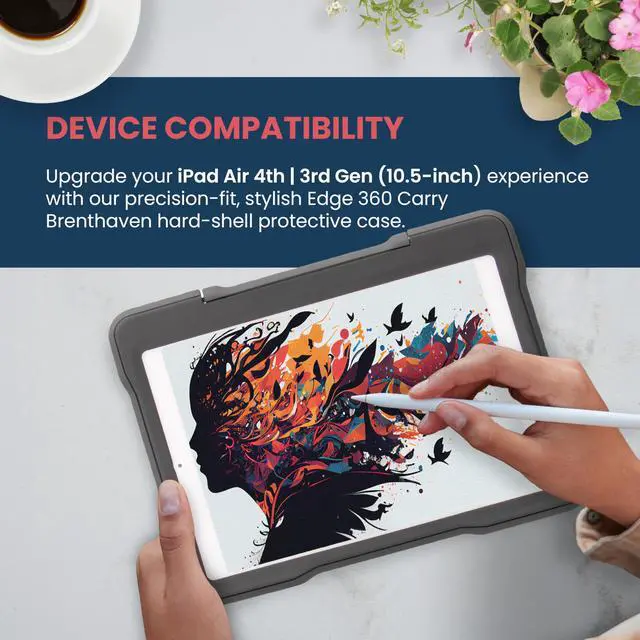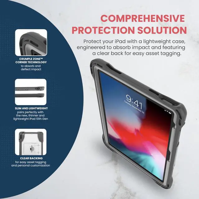 The Edge 360 Carry Case for iPad Air (3rd, 4th Gen) offers ultimate protection and functionality for the newest iPad model from Apple. Designed for the K-12 environment, the Edge Carry Case features a co-molded design that uses both rigid and tactile materials, a tough built-in kickstand for viewing and typing, and a rugged rotating handle. The case uses a screw-down design and impact-dispersing corner construction to achieve maximum drop protection of up to 6 feet. The case is designed to accommodate the Apple Pencil and other third-party styluses.