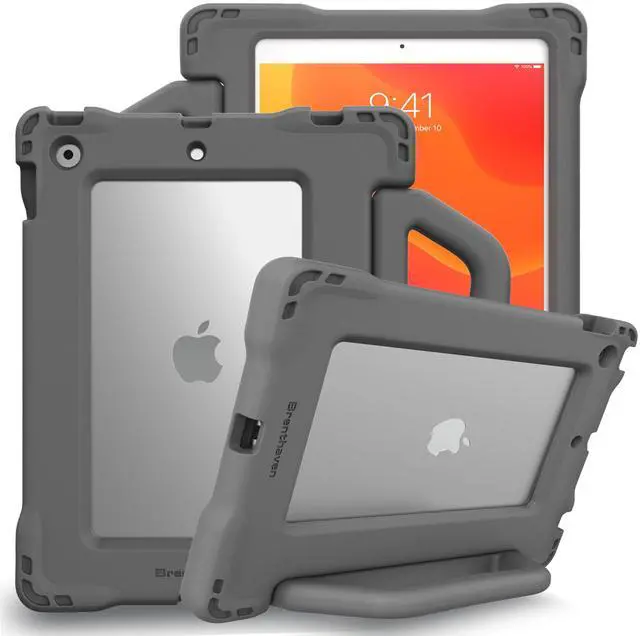 Brenthaven Edge Bounce Case Fits iPad 9th ^^ 8th ^^ 7th Generation ( 10.2 -inch) Kids Carry Stand Protective Cover - Durable, Slim, Lightweight and Drop Tested Touch ID Compatible - Gray