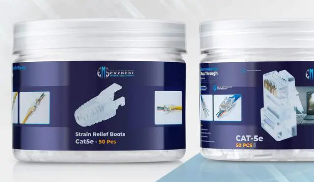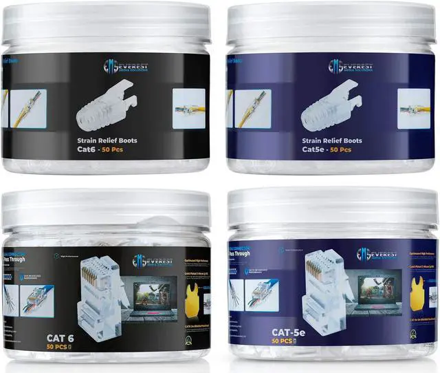 Everest Media Solutions Bundle - 2 Items: RJ45 Cat6 Pass Through Connectors and Strain Relief Boots - Pack of 50/50 + RJ45 Cat5e Pass Through Connectors and Strain Relief Boots - Pack of 50/50