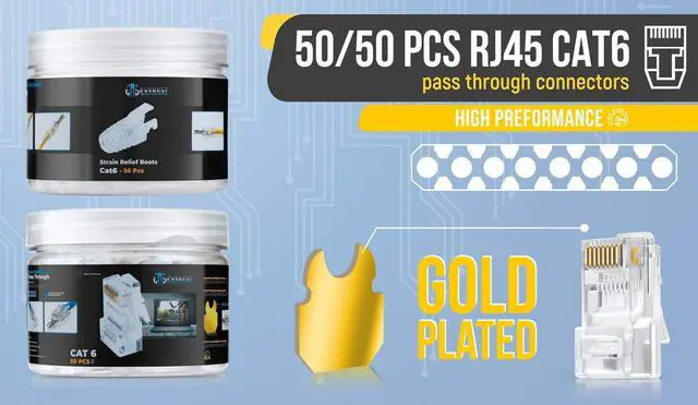 Items: RJ45 Cat6 Pass Through Connectors and Strain Relief Boots - Pack of 50/50 + RJ45 Cat5e Pass Through Connectors and Strain Relief Boots - Pack of 50/50
