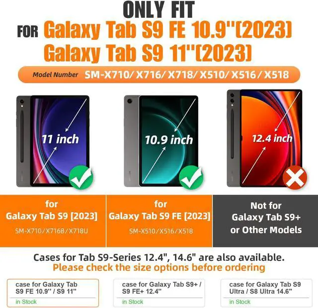 Compatibility: ONLY Compatible for Samsung Galaxy Tab S9 FE 10.9 inch 2023 (SM-X510/ X516B/ X518U) & Galaxy Tab S9 11 inch 2023 (SM-X710/ X716B/ X718U). Please visit SEYMAC Stock to choose the correct case for samsung tablet. (Please kindly note: Pencil Not Included)