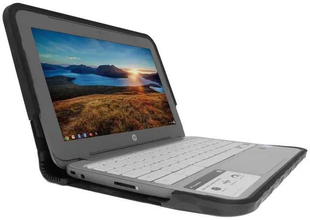 Gumdrop's SoftShell case for the HP Chromebook 11 is the first to provide always-on drop protection and capable of taking a fall without breaking a sweat. The SoftShell unique design strategically employs a combination of rugged and high impact materials that have no problem protecting the fragile hinge and corners of the HP Chromebook 11 from the daily abuse they normally receive.