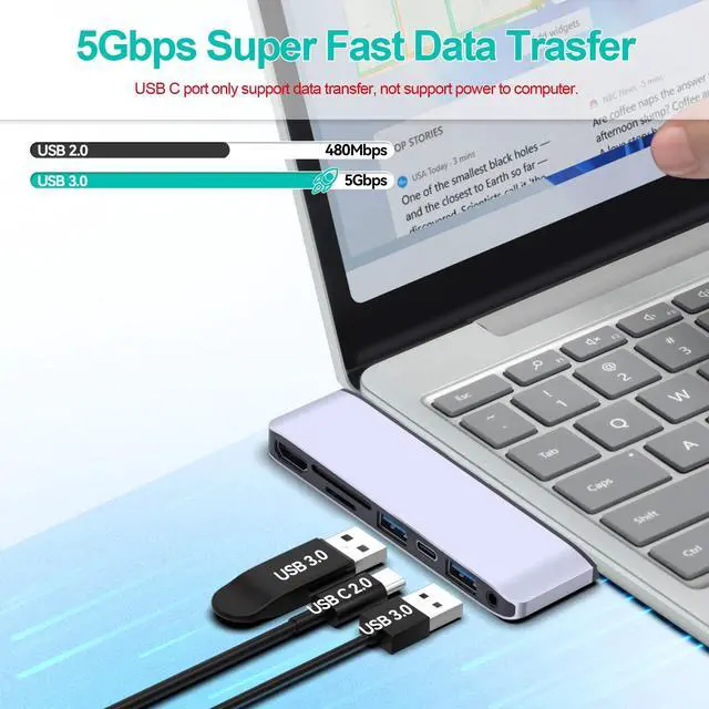 High-Speed Data Transfer: Two USB-A 3.0 ports offer up to 5Gbps transfer speed (10 times faster than USB 2.0) and are backward compatible with USB 2.0 and below. Ideal for connecting laptop accessories like USB drives, mice, keyboards, USB flash drives, wireless devices,