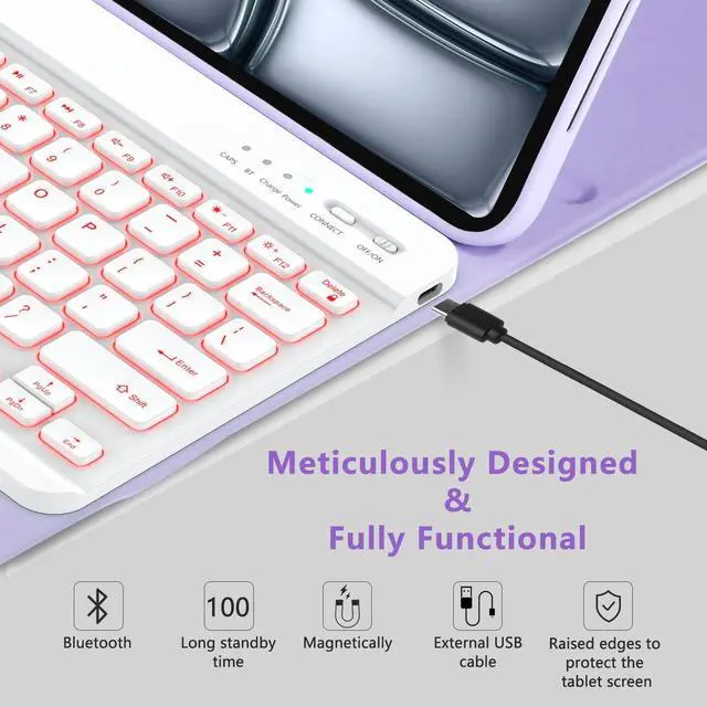 [(Colorful Backlight Keyboard)] for iPad Pro 13" M4 keyboard case is featured with beautiful backlight of different colors. The backlight design not only provides a visual enjoyment but also make the keyboard convenient to use even in a dark environment. Simply press the bulb icon to turn on/off the backlight.
