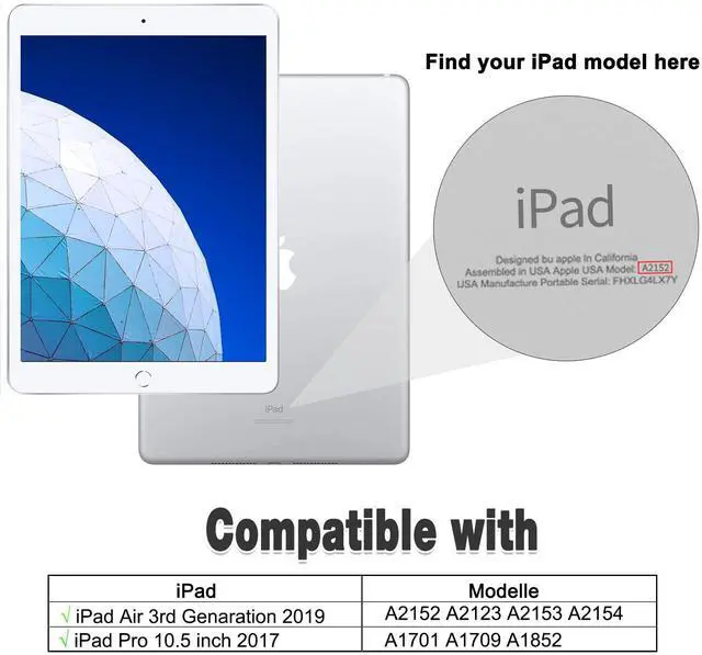 Compatibility: Only fit for Apple iPad Air 3rd Generation 10.5 Inch 2019 relesed Tablet [Model:A2152/A2123/A2153/A2154] and iPad Pro 10.5 Inch 2017 relesed Tablet[Model:A1701/A1709]. (2) Built-in Pencil holder for Pen securely carrying, Not Included Screen Protector and Apple Pencil.