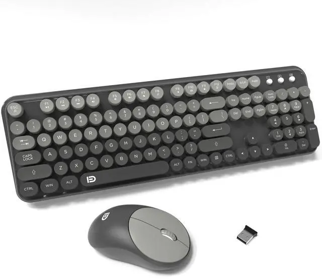 FOPETT Wireless Keyboard and Mouse Combo - Cute Colorful Mouse and Keyboard 2.4G Full-Sized with 104 Round Keys Retro Typewriter Keyboards for Laptop/Windows/PC - Grey Gradient