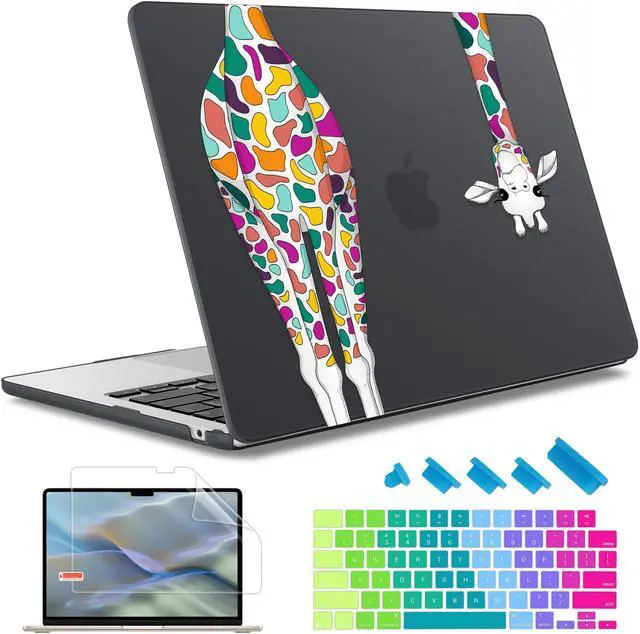 May Chen for MacBook Air 13.6 Inch Case 2025 2024 2023 2022 Release Models: A3240 M4 A3113 M3 A2681 M2, Plastic Hard Shell Case for MacBook Air 13.6" with Retina Display, Black Colorful Giraffe