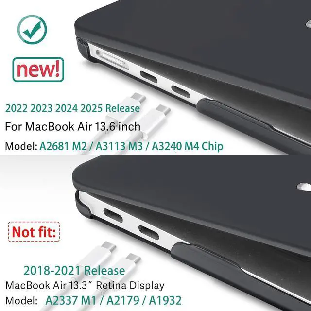 Designed ONLY to be compatible with MacBook Air 13.6 inch 2025 2024 2023 2022 Release Model: A3240 M4, A3113 M3, A2681 M2 Chip with Liquid Retina display Fits Touch ID. Pls verify Model No. the underside of Notebook before buying.