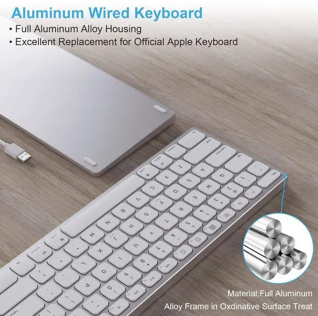 Premium All-Aluminum Wired Keyboard for Mac OS: Crafted with a sleek, durable aluminum frame and finished with an anodized coating, this wired keyboard delivers both aesthetic appeal and long-lasting durability. Its minimalist design and glossy chamfered edges make it the perfect companion for your Mac devices, offering an elevated typing experience for Mac OS users.