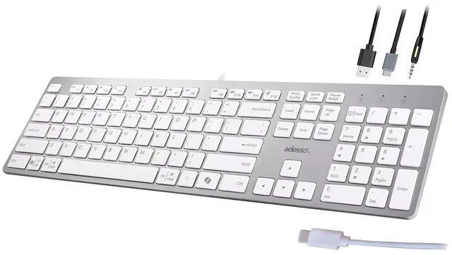 Adesso EasyTouch 730 - USB C Multi-OS Scissor Switch Keyboard with Copilot AI Hotkey, Type C Keyboard with Hub, Built-in USB-A/C Ports and 3.5 mm Aux - Quiet, Slim Design AKB-730UW
