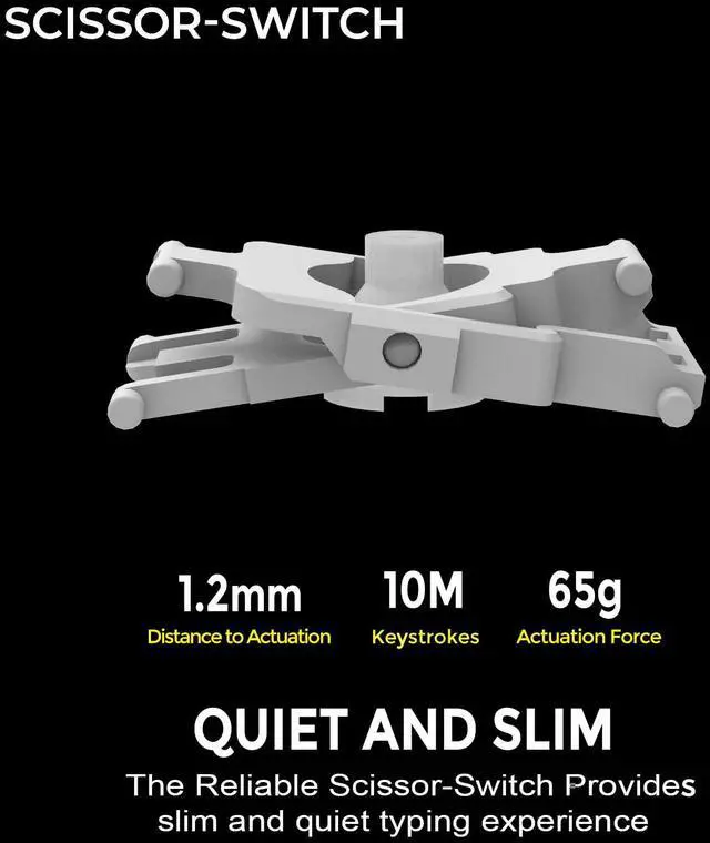 Responsive Typing Comfort: Delight in a smooth typing experience with the low-profile scissor switch technology, which offers responsive feedback with reduced key travel distance and pressure, promoting comfortable and extended typing sessions.