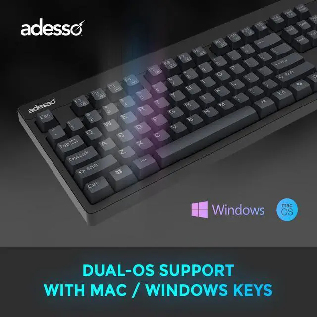 The Adesso EasyTouch 130 is a full-sized wired mechanical keyboard thoughtfully designed to enhance both productivity and comfort. It features tactile and quiet brown mechanical switches, providing a responsive feel with every press while maintaining a low noise profile suitable for any office environment. These switches are built to last, with a tested lifecycle of 50 million keystrokes. A standout feature is the integrated CoPilot AI hotkey, offering immediate access to your AI assistant to help with tasks, generate ideas, and streamline your workflow. The keyboard's unique gasket-mounted structure, with cotton filling between the plate and PCB, dampens sound and vibration for a superior, solid, and quiet typing experience.