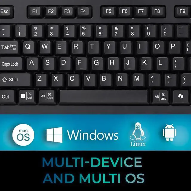 Full-Sized Layout: 104-Key US Layout with membrane key switches; offers quiet and responsive typing; equipped with Num Lock, Caps Lock, and Scroll Lock indicators ^^ Hotkeys for