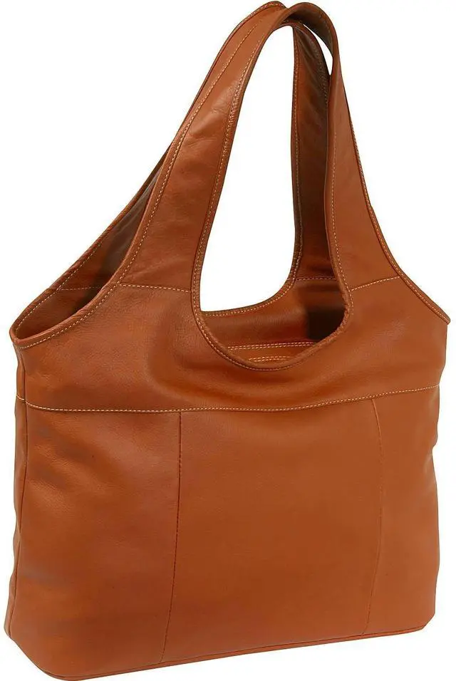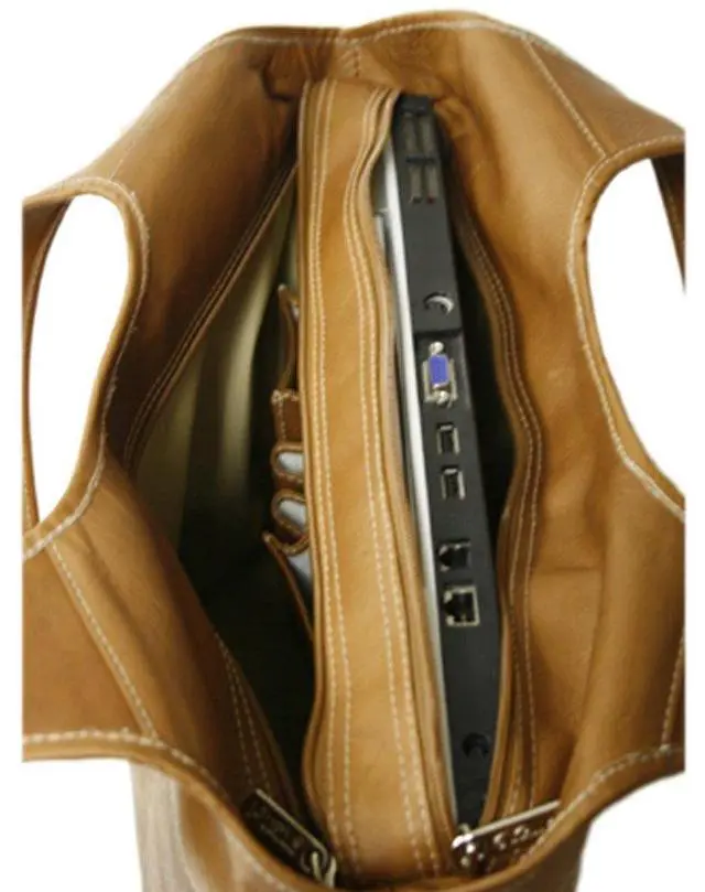 Two zippered main compartments with double hobo straps and large rear zip-pocket. Front compartment complete with full organizer and interior zip-pocket. Back compartment padded for a laptop (16 inch x 10 inch x 3 inch).