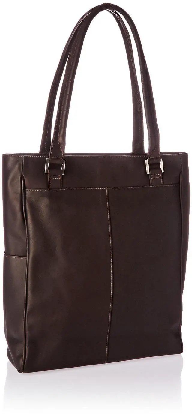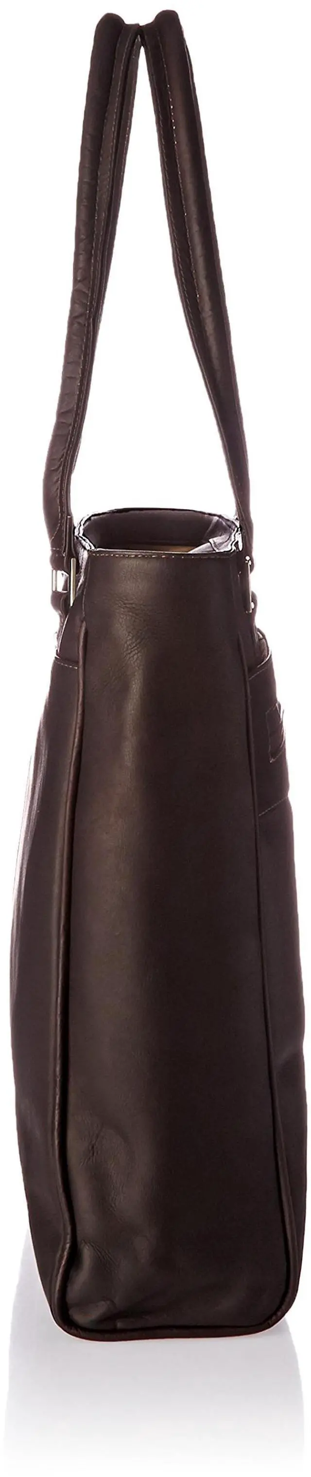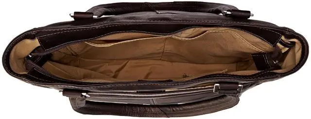 Top zip-opening to main compartment complete with a full organizer, zip-pocket, and two open pockets. Slim front compartment with magnetic snap closure and exterior open pocket. Side open pocket and double padded straps.