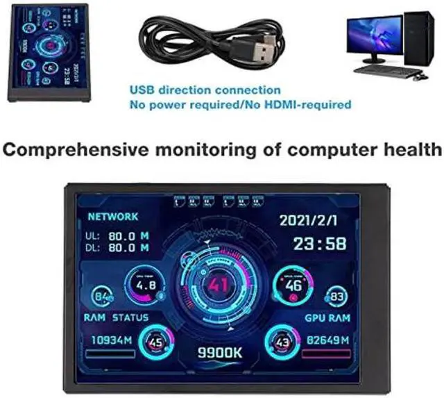 [(EASY CONNECTION)] : This PC CPU RAM data monitor does not require for AIDA64 software, extra power supply, HD Multimedia Interface cable. All you need is a USB cable to connect the mini sub screen to your computer