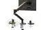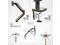 It slides out of a locking bracket, for simple mounting. The head tilts a full 180-degrees up and down as well as left to right, and locks in place with an Allen key. The head also rotates for use in either portrait or landscape orientation. The base swivels to create the ideal viewing angle. The mount attaches in two ways. It grips counters that have a thickness range of 0.39 to 3.35 inches via padded rotary C-clamp. It can also be permanently screwed into surfaces through pre-drilled grommets with a hole diameter of 0.39 to 2.3 inches.