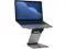 This adjustable folding laptop mount offers a variety of options for working while standing or sitting; at a counter or a desk; or virtually any place requiring a sturdy, reliable workstation. The mount folds to a 1.5 -inch flat, ideal for easy transport in a computer bag, backpack, or briefcase. It unfolds via two 180-degree joints, and adjusts up to 3.25 -inches in height, easily creating the ideal position for posture and comfort. To adjust height, simply push the button in the center handle and pull. Release the button to lock the center panel in place at the desired height.