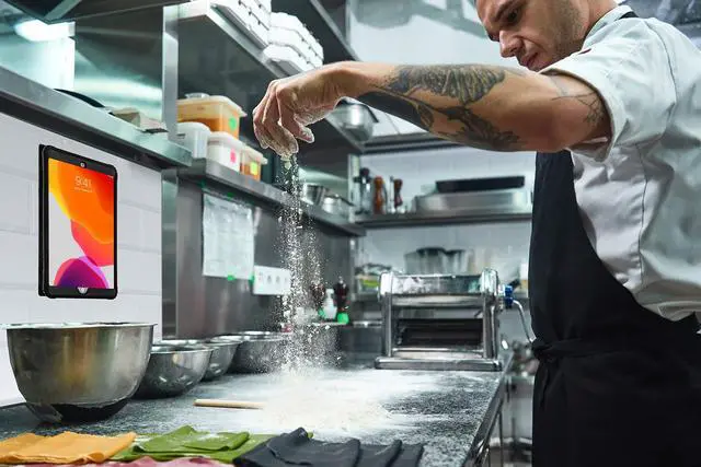 Enjoy fast, effortless handheld-to-wall setups with CTA Digitals Magnetic Splash-Proof Case for iPad. This rugged tablet case employs powerful embedded magnets at its rear to enable instant mounting to metal surfaces. Your tablet will be easily accessible on the wall of any kitchen, garage, engine room, or even just the front of the fridge in your kitchen. No metal wall to fix it to?