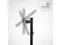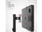 The screen/device can rotate 360 degrees and tilt up and down. A handy clip behind the center post neatly routes cables out of the way. Rated for monitors and devices up to 13.2 lbs.