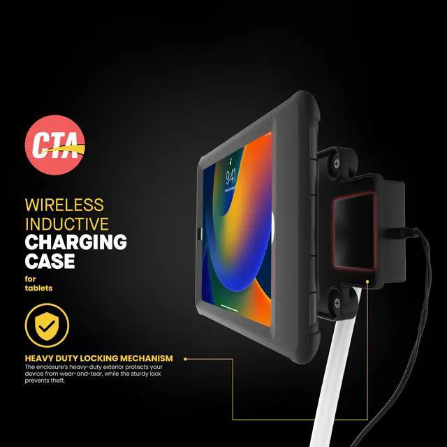 Attention retailers and anyone who needs a rugged solution. Our inductive charging case and dock exceeds the functionality of normal cases. First and foremost, its wireless. The inductive charging back plate prevents the need to remove the iPad Air 4th and 5th Generation 10.9 devices to plug in a charging cable. This innovative case can be used in a variety of ways. Included induction dock features a convenient 75x75 VESA pattern that works seamlessly with any compatible mounting plate. A built-in strap on the rear of the case lets users quickly switch for secure handheld use.
