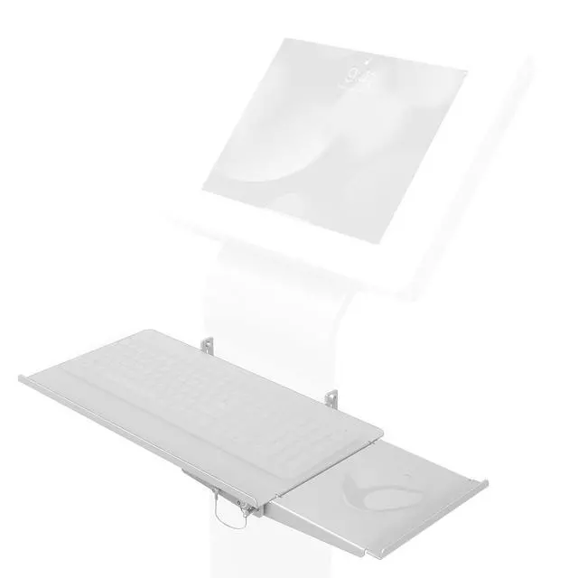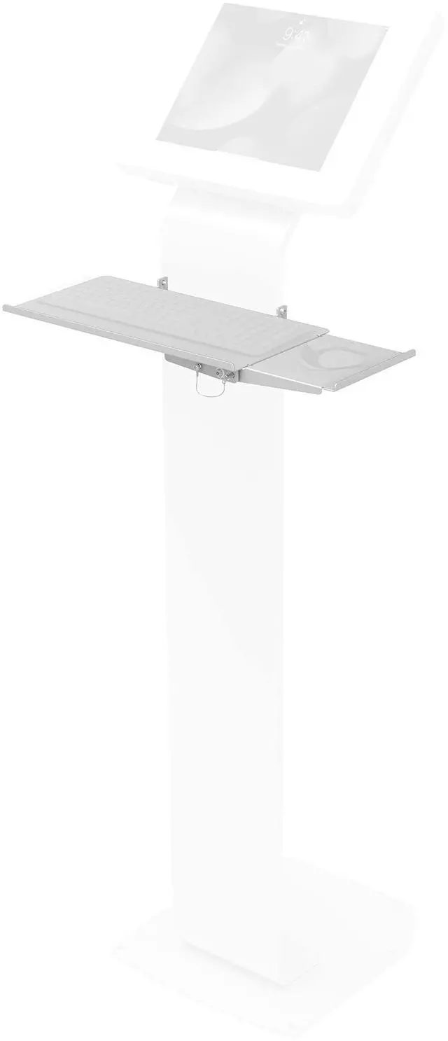 CTA Digitals Keyboard Tray add-on for our popular Floor Stand Kiosk (ADD-PARAFSW) transforms a presentation kiosk into an instant digital workstation. An intuitive bracket screws into the side of the floor stand with the included hardware kit. A useful slide out tray extension creates added surface area for office supplies. Secure padding and a handy tray lip holds keyboards securely in place, and folds down flat against the body of the floor stand when not in use. This tray has the same finish as the ADD-PARAFSW kiosk to ensure a sleek, stylish appearance.