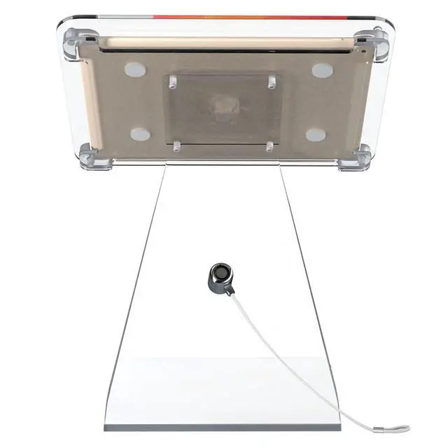 The two words best used to describe this product are secure and beautiful. The enclosures heavy-duty acrylic exterior protects your device from wear-and-tear, while the special screw system lock prevents theft. Meanwhile, the soft foam grips on the interior keep your device cozy and scratch-free. This dashing Kiosk Stand is perfect for POS at Restaurants, Coffee Shops and pop-up stores. For added security, you can use the included galvanized steel locking cable to doubly secure your device by locking one end directly to the stand and tethering the other to any nearby fixture.
