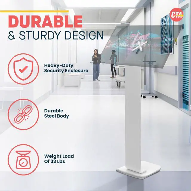 Floor Stand Kiosk - CTA Heavy-Duty VESA Compatible Floor Stand with Interior Cable Routing System and Scratch Resistant Padding on Weighted Base with Kitting Capabilities (ADD-PARAFSW) White