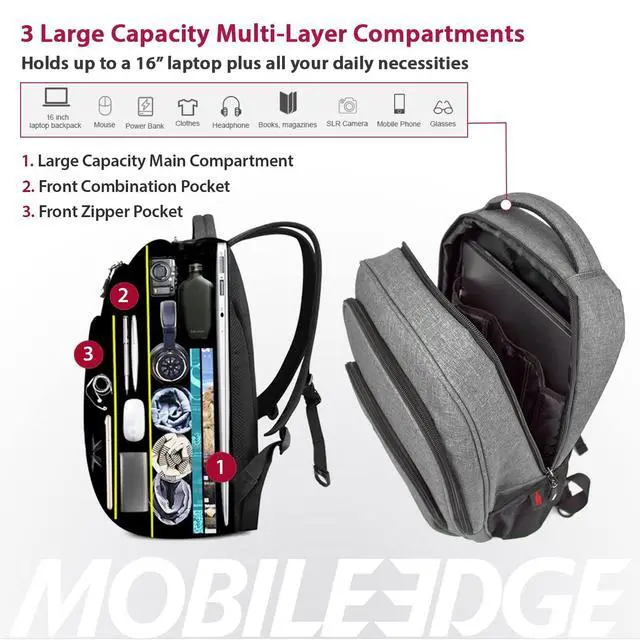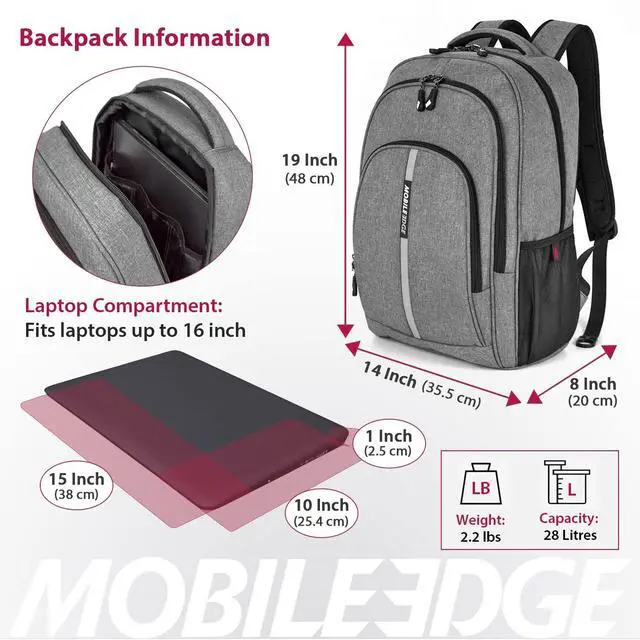 DescriptionAre you tired of lugging around heavy, uncomfortable backpacks during your travels? It's time to upgrade your experience with the Mobile Edge commuter laptop lightweight backpack. Designed for the discerning traveler who demands a lightweight yet dependable, high-quality backpack, this computer backpack is the epitome of style, functionality, and durability. This travel backpack for men and women is engineered with your comfort in mind. Its lightweight construction ensures that you can explore without feeling weighed down. The Cool-Mesh back panel and padded shoulder straps provide unmatched comfort, even during the most extended journeys.