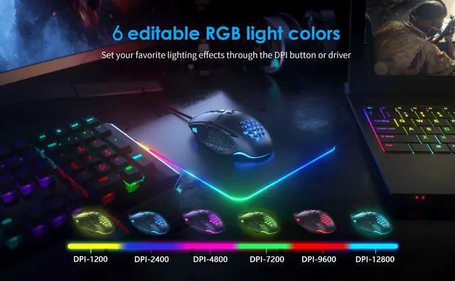 Polling Rate: The RGB gaming mouse offers 6 levels of