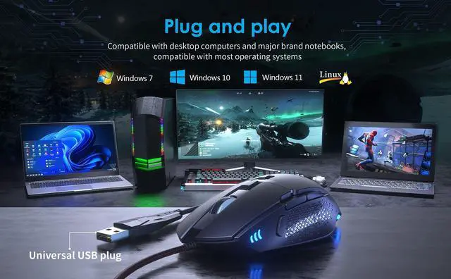 Durable Cord: Compatible with Windows XP, 10, 8, 7, Mac OS, and Linux, this gaming mouse for laptops is perfect for MOBA and RTS games. The fabric - wrapped cord improves its durability, ensuring it can handle regular use. ^^ Ergonomic Design for