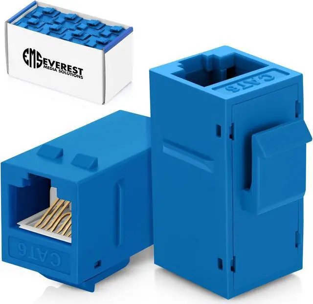 Everest Media Solutions RJ45 CAT6 Keystone Coupler in Blue - 48-Pack - Female to Female Ethernet Keystone Jack for Standard Wall Plates & Patch Panels - UTP Inline RJ45 Coupler Extender