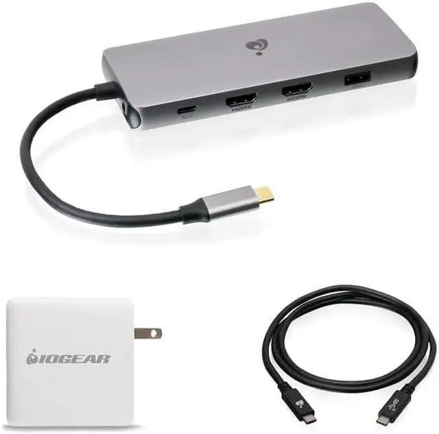 IOGEAR USB-C Triple Display Dock Station GUD3C4K3P with USB-C 6Ft Cable and100W USB-C GaN Charger Adapter