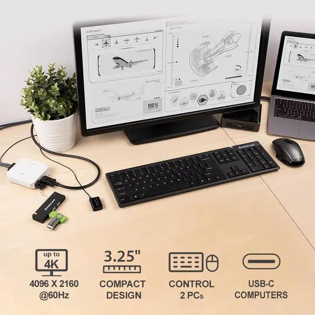 Experience incredible high-definition resolutions with a 4K USB C monitor (4096 x 2160 60hz) with this simple yet robust cable KVM. A perfect choice for finance, medical, and graphics fields