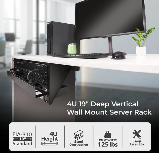 IOGEAR 4U 19 Deep Vertical Wall Mount Server Rack, 125 lb Capacity for mounting AV/Network/Server/Data Equipment, GRWV4U