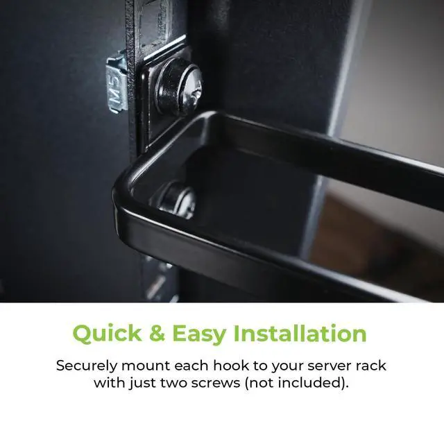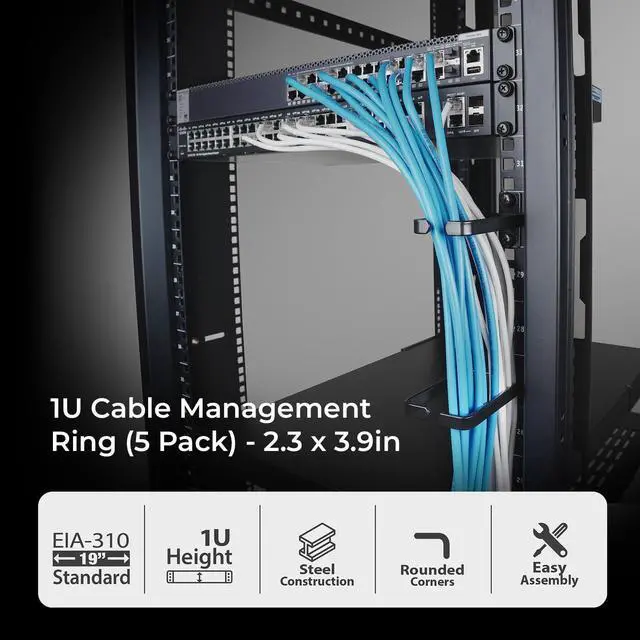 Keep your server rack or cabinet cables tidy with the GRCMH57 1U Cable Management D-Ring (5-Pack). This set of five durable steel D-rings allows you to create an organized path for your cabling directly on your rack. Includes five D-rings for comprehensive cable management. Simple to add to any standard server rack or cabinet. Help prevent cable clutter that can impede air circulation. Provides cleaner and more professional rack appearance. Backed by a 3 Year Limited Warranty.