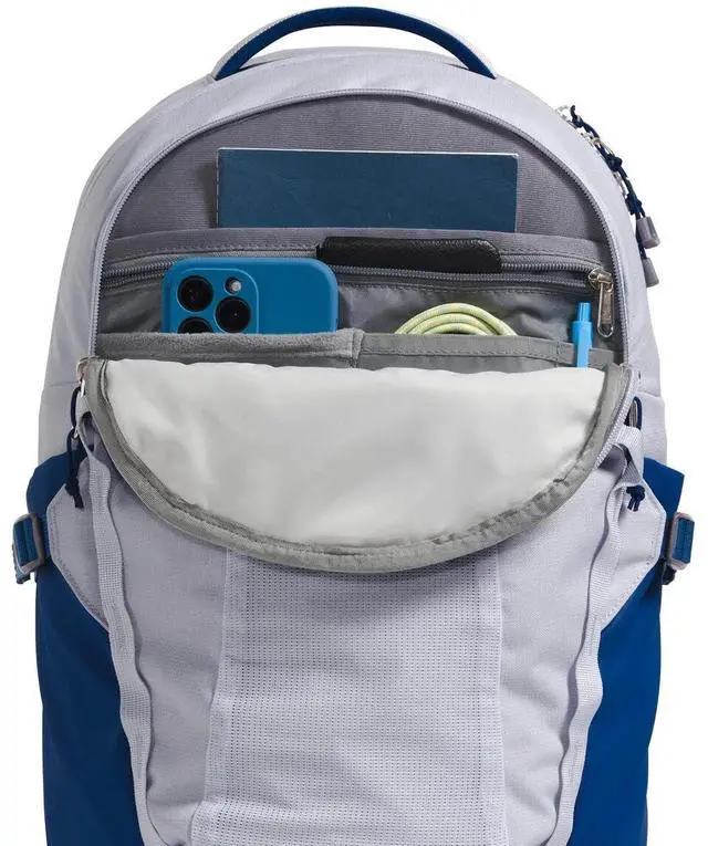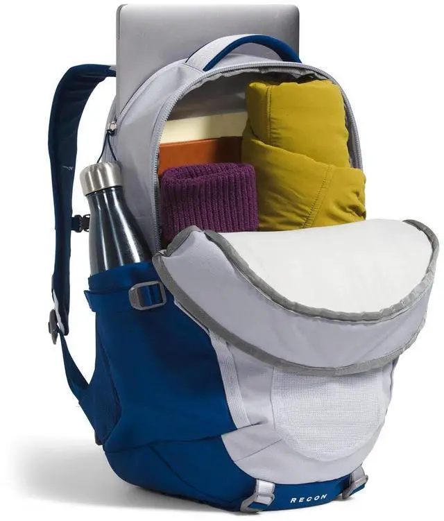 Carry the The North Face Recon your partner in professional mobility. Crafted from recycled polyester material, non-PFC durable water-repellent (Non-PFC-DWR) finish, it features four zippered closure pockets, three interior slip pockets, sternum strap with whistle lock buckle, tablet sleeve, women-specific fit, YKK zippers, and brand logo on the front. Accredited by the American Chiropractic Association. Polyester lining.