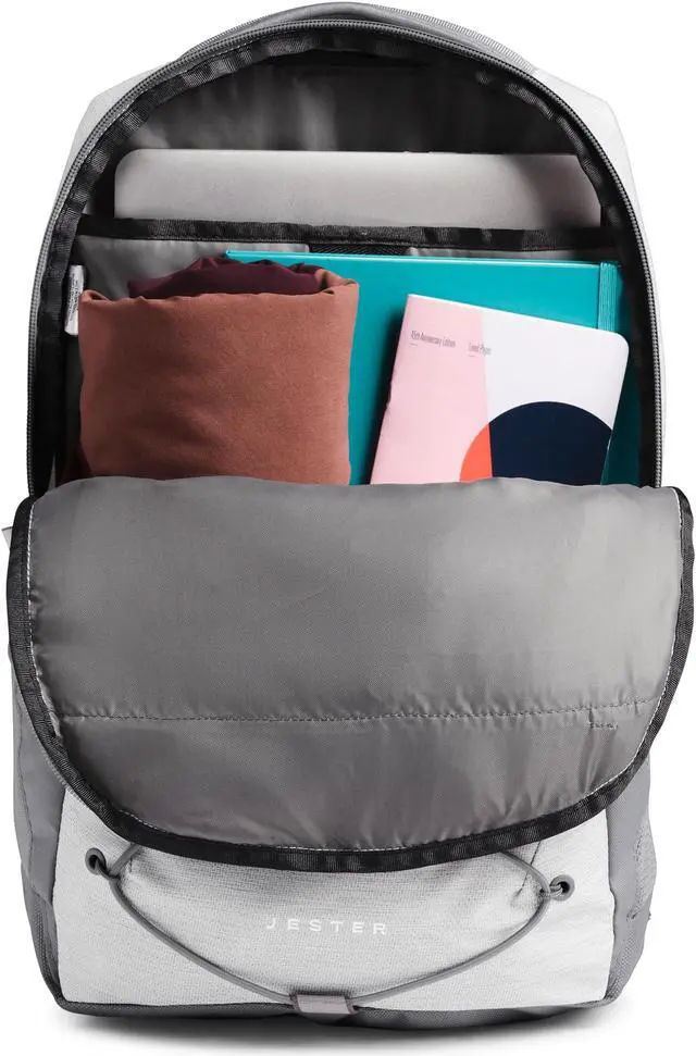 THE NORTH FACE Women's Jester Everyday Laptop Backpack | Commuter Travel Bag with Laptop Sleeve, Water-Repellent Finish, Spacious Compartment, TNF White Metallic Mélange/Mid Grey-NPF, One Size