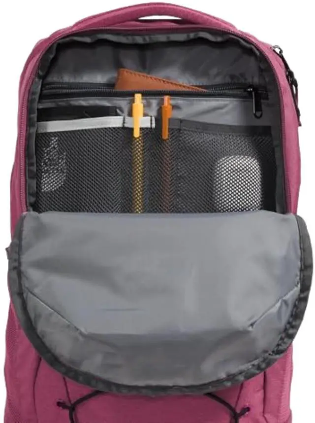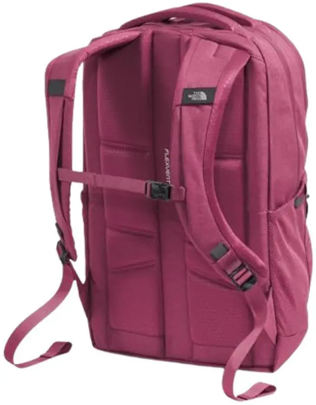 DescriptionAccredited by the American Chiropractic Association, The North Face Jester backpack is designed with a FlexVent suspension system that features a flexible yoke built from custom injection-molded shoulder straps, a padded back panel, and a highly breathable lumbar panel. This travel backpack comes with two padded shoulder straps and dual grab handles for easy handling. The front bungee system ensures additional storage while the stand-up design offers easier loading and unloading. Its front compartment comes with zippered pockets, a pocket sleeve, and a key hook. This backpack has a padded 16" laptop sleeve and sternum strap, offering 360-degree reflectivity.