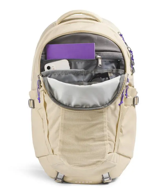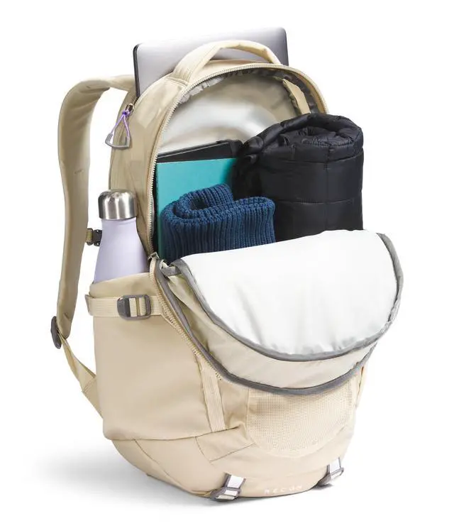 RECON CLASSIC. An icon reimagined, the Women's Recon excels as a daypack with its women-specific suspension, large mesh storage pocket, and daisy-chain attachment points. ^^ FLEX VENT TECHNOLOGY. The updated women-specific FlexVent suspension system has articulated shoulder straps, a rounded back panel and stitch lines for total comfort. ^^ TOTAL ORGANIZATION. Two external water bottle pockets double as multi-use pockets. The front compartment has a padded tablet sleeve and zip pockets. An external fleece-lined pocket stores small items or electronics. ^^ COMFORTABLE CARRY. For everyday, commuting or travel, this backpack has a top handle for easy grabbing and a removable waist belt for a custom fit.