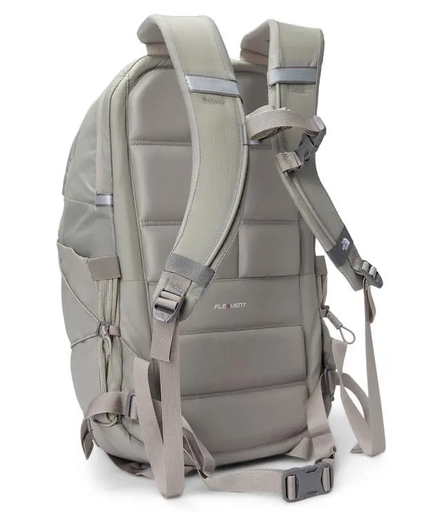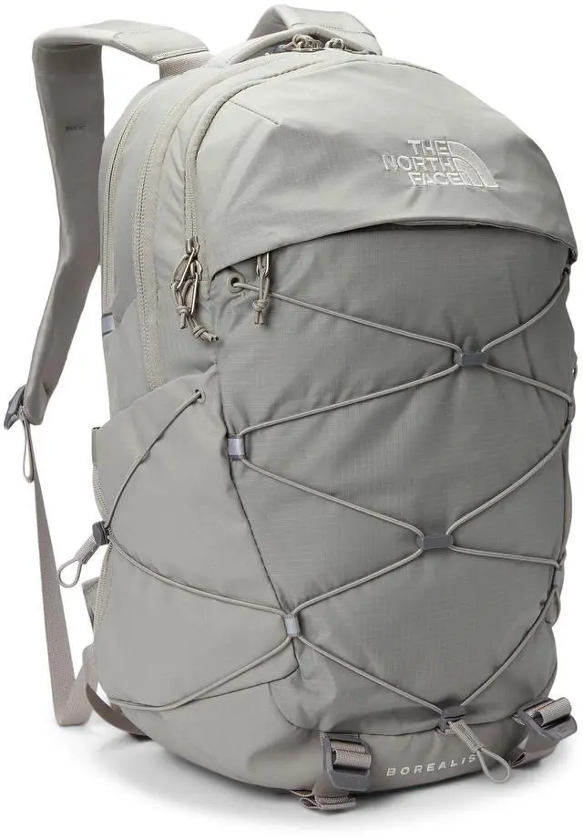 DescriptionCarry all your essentials in The North Face Borealis backpack. 360-degree reflectivity. Articulated shoulder straps. Bottom compression. External bungee-compression system with clips. External fleece-lined pocket. Front compartment features internal organization with secure-zip pockets and a padded tablet sleeve. Large main compartment. Protective laptop compartment. Padded top grab handle. Recycled body fabric with non-PFC durable water-repellent finish. Side bungee system allows for additional compression. Stand-up design for easy loading and unloading. The FlexVent Suspension System is accredited by the American Chiropractic Association; removable waist belt, sternum strap with whistle buckle.