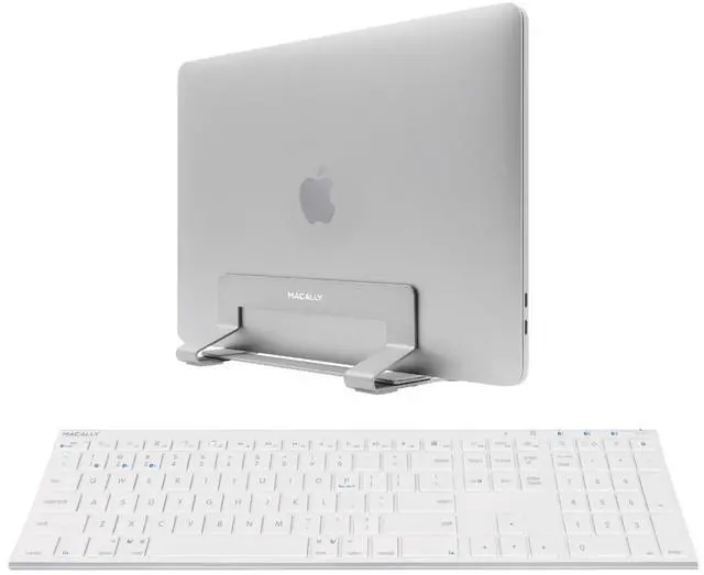 Includes an aluminum metal frame keyboard and a sharp steel laptop stand. Great for decluttering desk and typing in more comfort and less strain.