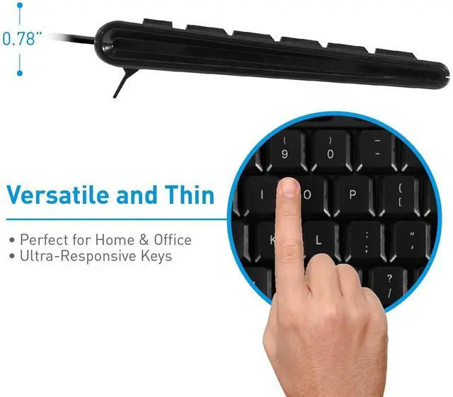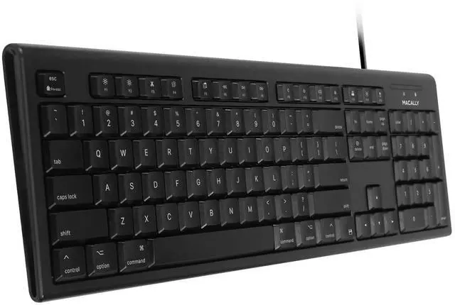 Classic Apple keyboard, Matte Black finish with a full size keypad and shortcut keys to increase productivity. Includes a computer mouse designed for precision, comfortable control, and smooth scrolling. Always depend that your wired computer mouse will not lag or die on you.