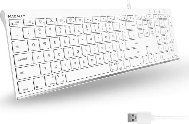 Includes an ice white finish computer keyboard that has a modern slim base and a dependable wire USB connection. Comes with a sleek aluminum laptop stand that will transform your desk, and achieve a modern contemporary minimalistic aesthetic.
