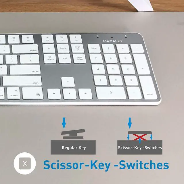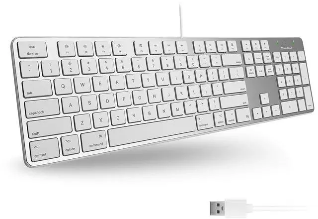 Includes a slim wired keyboard for Mac & PC, designed with low profiles keys, reliable wired connection, and an ultra slim body. Comes with an aluminum ergonomic laptop stand that improves posture and cools down laptop. Designed at the ideal eye level angle, prevents hunching over your laptop screen.