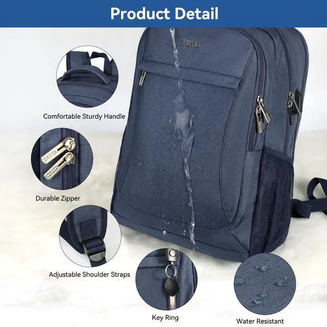 Practical & Convenient Voova business backpack backside comes with a luggage belt is great to slide over the luggage upright handle tube for easier carrying.It would stays in place well. As a men/women backpack, you would enjoy its fa